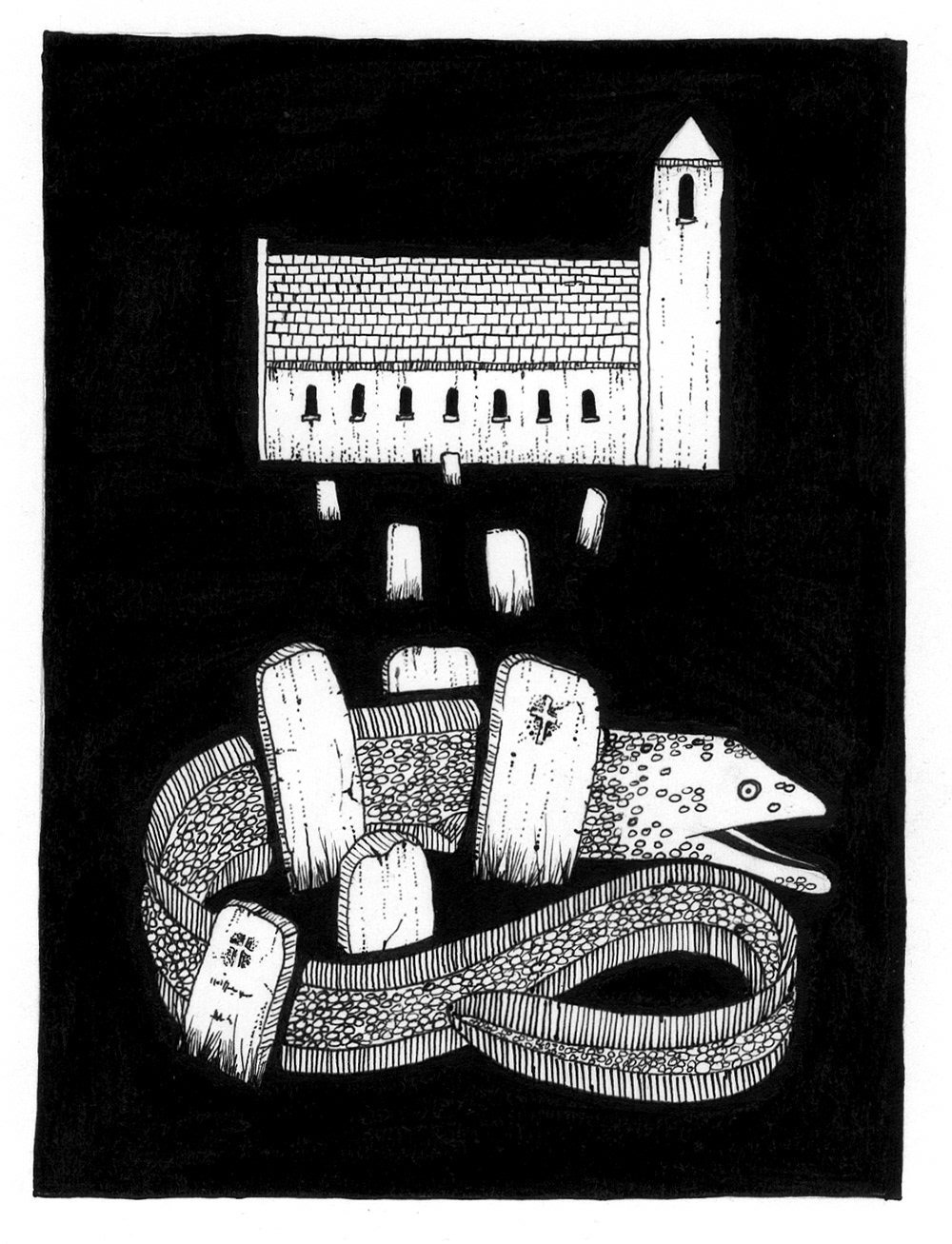 Pen and ink illustrations telling the stories and legends of the Cliffs Of Mohar in Co. Clare, as part of a permanent exhibition at the Cliffs of Moher Visitor's Centre.